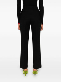 Wool trousers [ SKU: 10114703601 ] black wool crepe texture concealed front button, hook and zip fastening belt loops two diagonal pockets to the sides pressed crease two rear jetted pockets straight leg Composition Lining: Acetate 75%, Silk 25% Outer: Polyester 100%, Wool 100% Polyurethane 100% Reference 805983Z7AC31000 Made in Italy Size and Fit This piece fits true to size. We recommend you get your regular size Model is 1,75m / 5ft 8in wearing size 40 (IT)