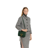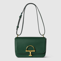 In the Fall Winter 2025 collection, the Gucci Siena small shoulder bag carries forward the evolution of the Horsebit, a signature code that is inherently Gucci. Crafted from fine smooth leather, its structured silhouette is defined by the half Horsebit clasp, a distinctive detail first introduced in the 1970s. Finished with gold-toned hardware and a lined interior featuring three gussets and a zip pocket. - Green fine, smooth leather - Gold-toned hardware - Dark green leather lining - Inside: 3 gussets and 1 zip pocket - Shoulder strap: 9.1" – 9.8" drop; 50" length - Half Horsebit snap closure - W8.9" x H5.5" x D3.1" - Weight: approximately 1.54lbs - Made in Italy - Fits iPhone Pro Max/Plus, Airpods, long wallet, and lipstick