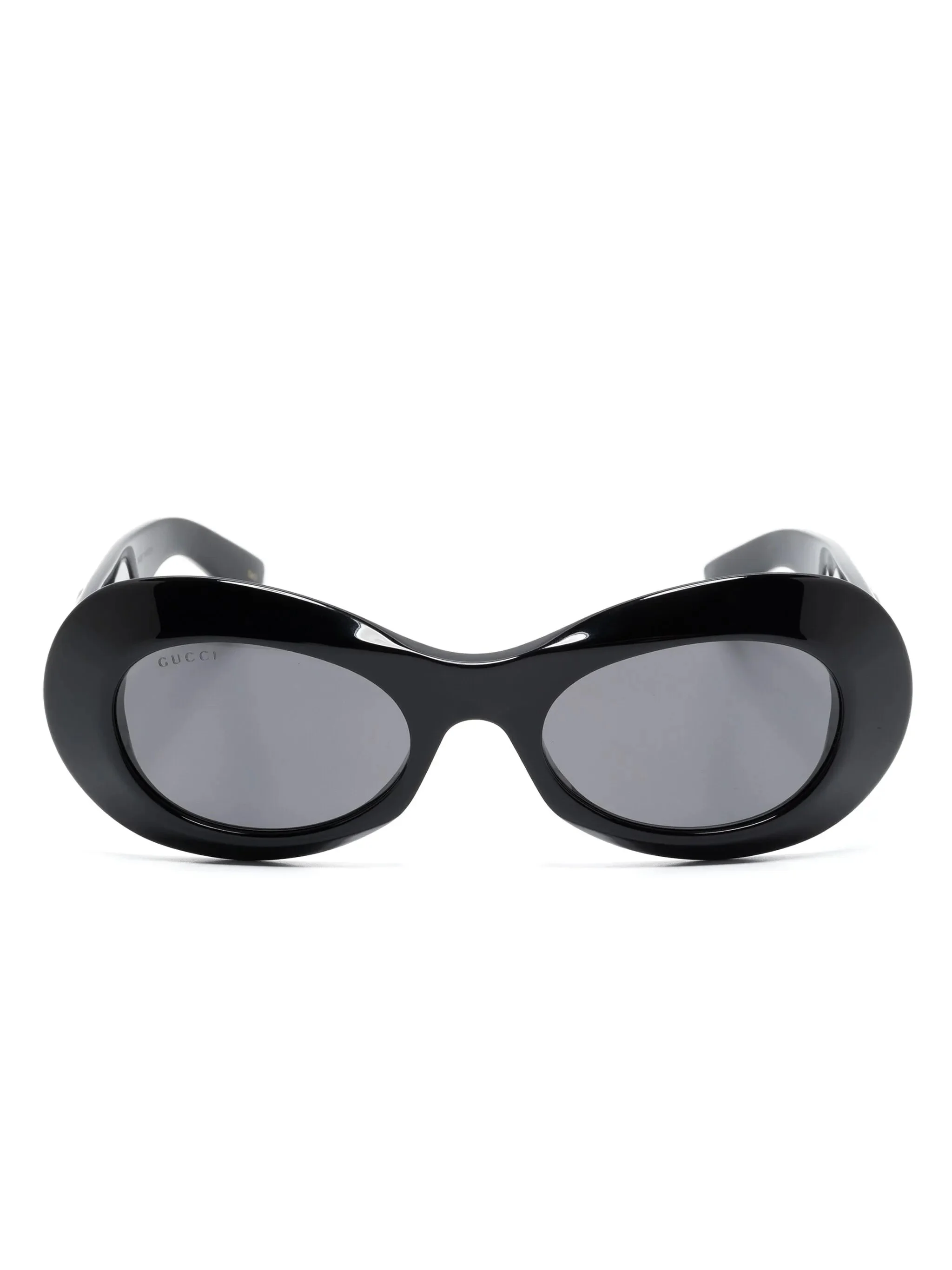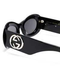 black acetate high-shine finish signature Interlocking G logo plaque lens decal oval frame tinted lenses UV-protective lenses nose pads oversize arms curved tips These glasses come with a protective case. - arm length: 14.0 centimetres, bridge width: 2.0 centimetres, length: 5.1 centimetres, total width: 14.5 centimetres - Color: BLACK - Made in: Italy - Designer Style ID: 797449 J0740 1012 Composition and care Acetate: 100.0%