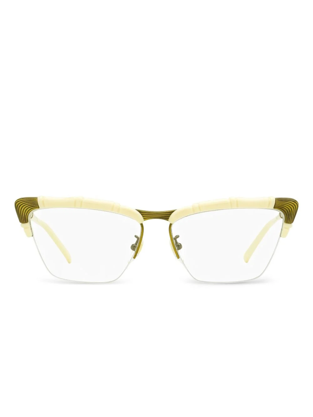 bamboo-detail cat-eye glasses Highlights - Gold-tone - Signature bamboo detail - Antique gold accents - Semi-rimless frame - Cat-eye profile - Metal frame - These glasses come with a protective case. - All glasses from farfetch are sold as non-prescription frames. Imported Composition Metal 100%, Plastic 100% SIZE & FIT Measurement Arm Length 5.51 in(14 cm) Bridge Width 0.59 in(1.5 cm) Lens Diameter 2.28 in(5.8 cm)
