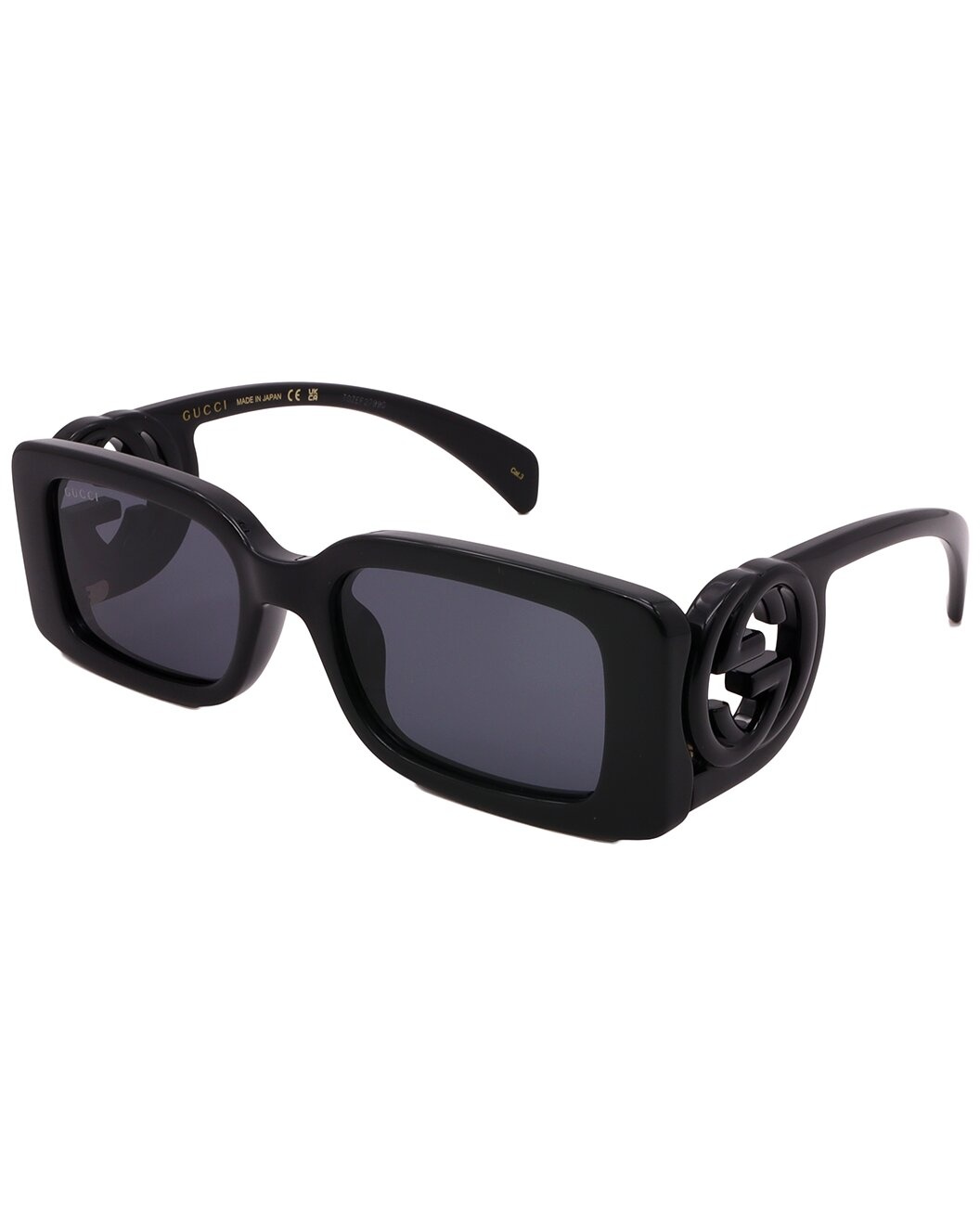 - About the brand: Eclectic and coveted. Italian luxury redefined. - Frame shape: square - Frame color: black - Lens color: dark grey - These frames flatter those with an oval, round, diamond, triangle or oblong shaped face - Plastic lenses with 100% UV protection - Logo at temple - Lens: 54mm wide - Bridge: 19mm wide - Arms: 140mm long - Case included; case size and color may vary - Model #: GG1325S 001 - Our products are 100% genuine. In some cases we purchase merchandise from trusted independent suppliers and not directly from the brand owner. In all cases we stand by the authenticity of every product sold on our site. - The Eyewear Size Guide
