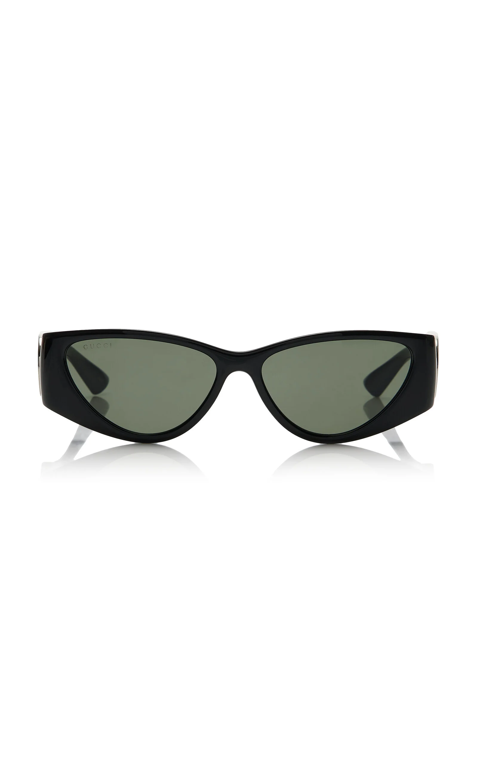 Drawing inspiration from archival elements of the House of Gucci, the newest eyewear collection is an eclectic mix of shapes and styles reminiscent of the ‘70s and ‘80s. This pair features cat-eye lenses set in acetate with 'GG' hardware at the wide temples. PRODUCT DETAILS - Composition: injection - 100% UVA/ UVB protection - Made in Japan