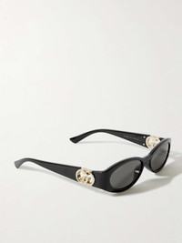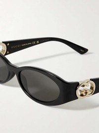 Gucci Eyewear's sunglasses are so chic, you're bound to reach for them often. They're made from black acetate with gold-tone 'GG' emblems at the temples and have sleek oval frames. Details & Care - Black acetate, gold-tone metal - Come with a case - 100% UV protection