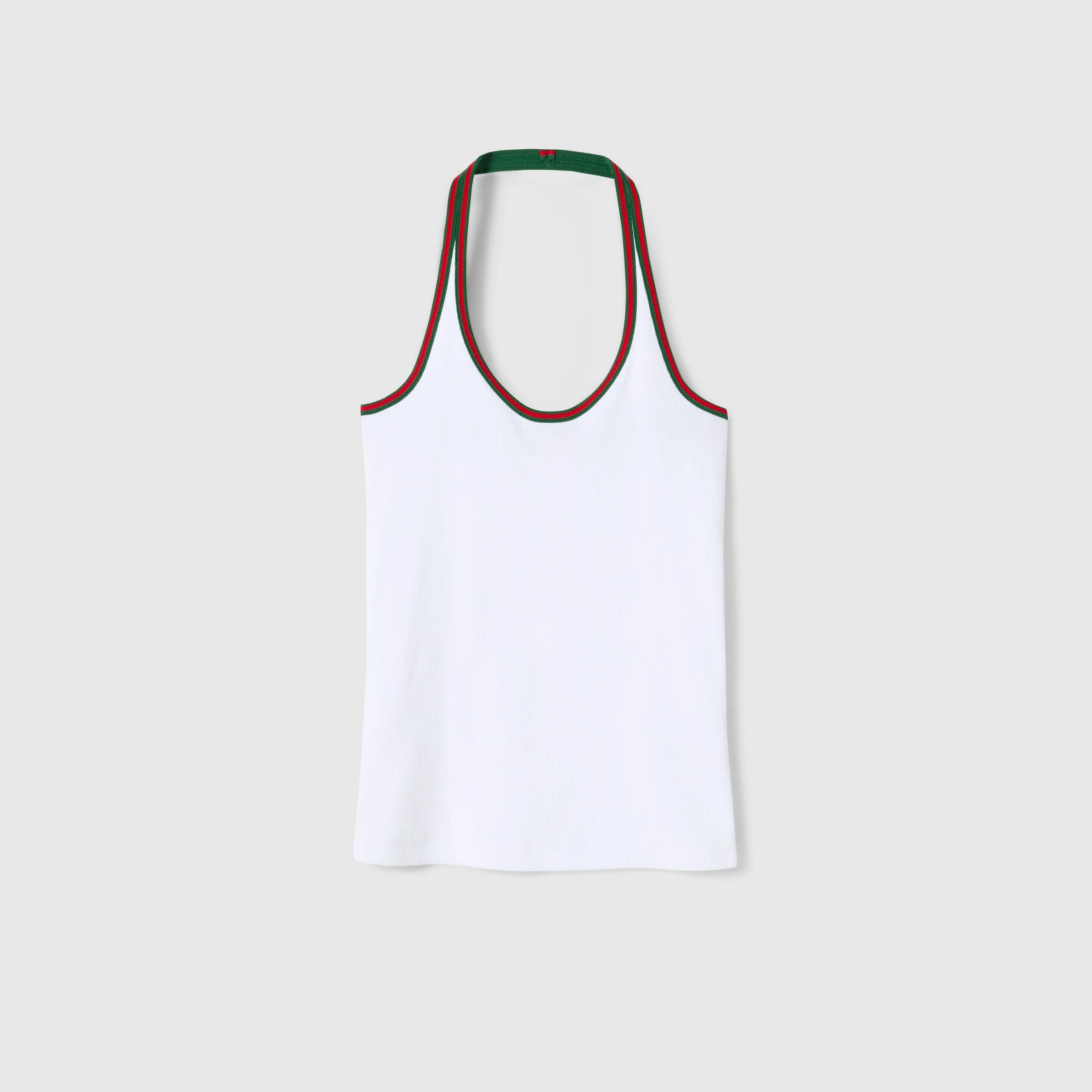 Sportswear-inspired pieces are elevated with the Web detail. The pieces balance comfort and statement, complete with signature house codes. Crafted from white heavy cotton rib, this tank top is finished with a Gucci embroidery. - White heavy cotton rib - Green and red Web trim - Gucci embroidery - Scoop neck - Sleeveless - Length: 16.1"