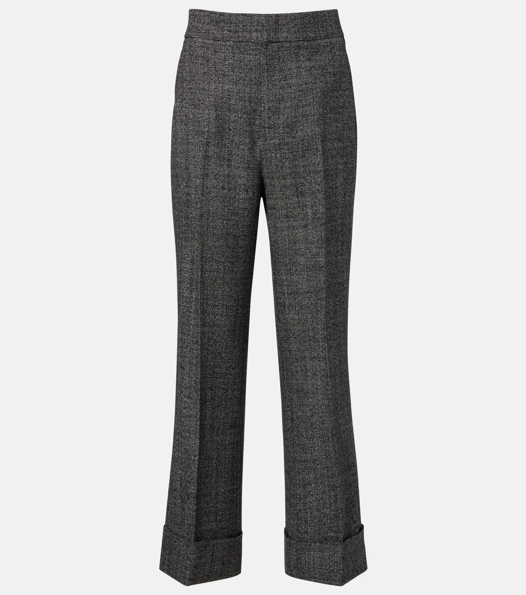 Gucci reinterprets the past in order to create something that is uniquely modern. These high-rise pants are crafted from wool and boast straight legs. Product Details - Material: 100% wool - Care instructions: dry clean - Made in Italy - Designer color name: Black/White - Item color: black, white - Pocket lining: 100% viscose - Embroidery: 100% polyester - Closure: zipper fly, button and hook fastenings - Pockets: slant pockets, back pockets - Hem: cuffed - Contains non-textile parts of animal origin - Item number: P01119204 Size & Fit - True to size - Non-stretchy fabric - Wide-leg - High-waisted - The model seen in the picture is 178cm-5'10" and wearing a size IT 40