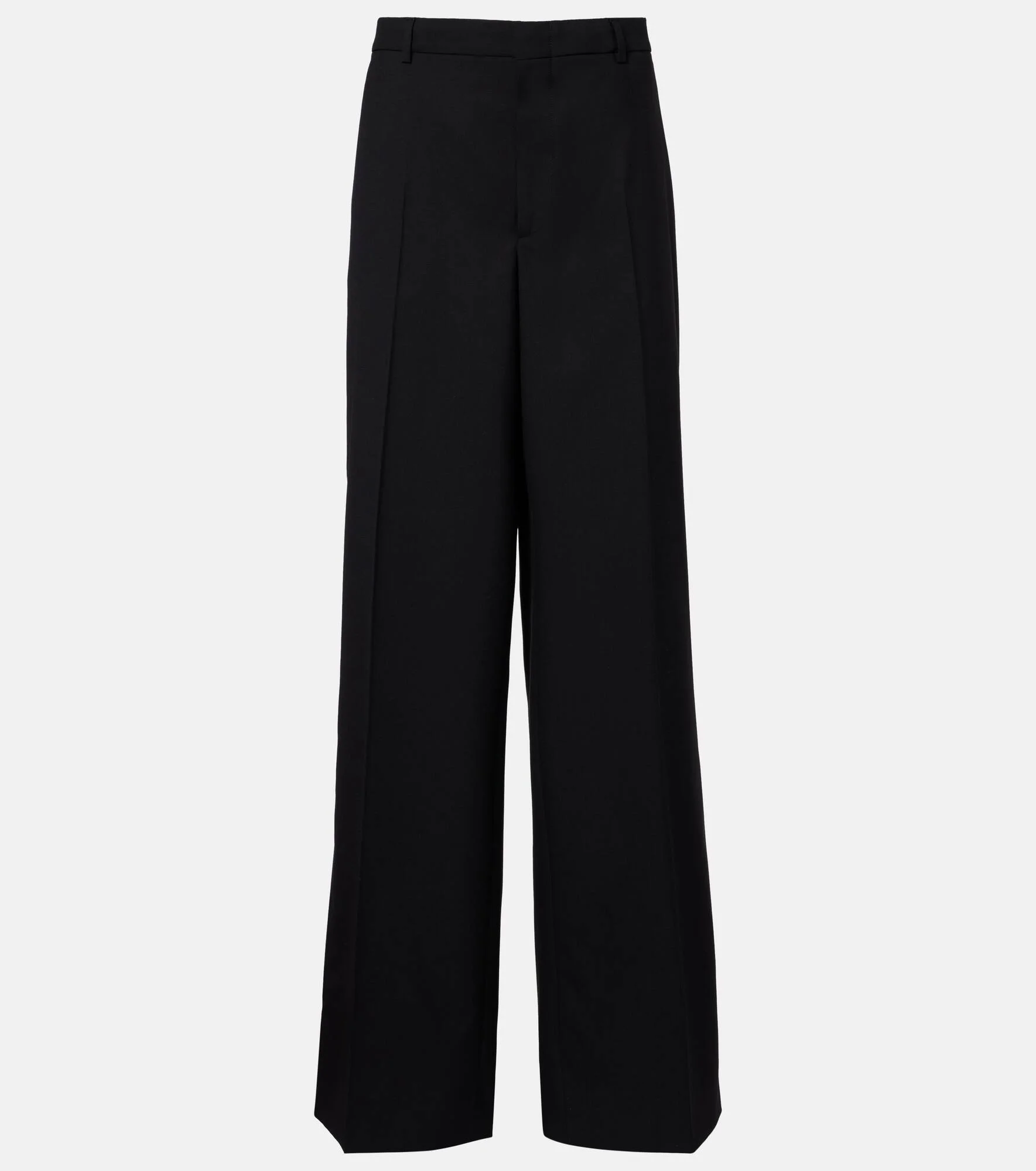 Gucci reinterprets the past in order to create something that is uniquely modern. These high-rise pants are crafted from wool and boast straight legs. Product Details - Material: 100% wool - Care instructions: dry clean - Made in Italy - Designer color name: Black - Item color: black - Lining: 100% cotton - Lining II: 100% viscose - Contains non-textile parts of animal origin - Closure: zipper fly, button and hook fastenings - Pockets: side slit pockets, back pockets - Belt loops - Item number: P01119218 Size & Fit - True to size - Non-stretchy fabric - Wide-leg - Sits low on the hips - The model seen in the picture is 178cm-5'10" and wearing a size IT 40