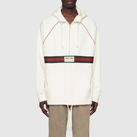 Gucci Hooded Sweatshirt With Web & Gucci Label 'Ivory' 645320-XJDAK-9146