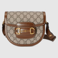 The Gucci 1955 Horsebit evolves as part of the latest collection with the addition of a mini shoulder bag variation, offering greater versatility and functionality. Presented in signature GG Supreme canvas with a flap closure, an adjustable shoulder strap completes the design. - Beige and ebony GG Supreme canvas - Brown leather trim - Gold-toned hardware - Part of the - selection, this product is embedded with NFC technology—an innovative way to authenticate and experience your item digitally. - Cotton linen lining - Horsebit - Half Horsebit detail at each side - Strap length: 25.2" - 29.1" - Adjustable leather shoulder strap from 10.2" to 12.2" - Weight: 1.4lbs, approximately - Mini size: 7.3"W x 6.7"H x 3"D - Made in Italy - Fits up to iPhone Pro, Airpods, card case, and lipstick