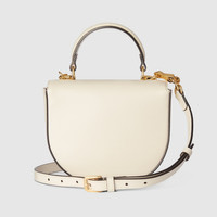 The Gucci 1955 Horsebit evolves with the addition of a mini shoulder bag variation, offering greater versatility and functionality. Presented in white leather with a flap closure, a detachable shoulder strap completes the design. - White leather - Light gold-toned hardware - Brown cotton linen lining - Horsebit - Inside: 2 main compartments; 1 card slot - Detachable leather shoulder - Spring closure - Weight: 1.2lbs, approximately - Mini: 7"W x 5.9"H x 2.5"D - Fits up to iPhone Plus, Airpods, card case, and lipstick
