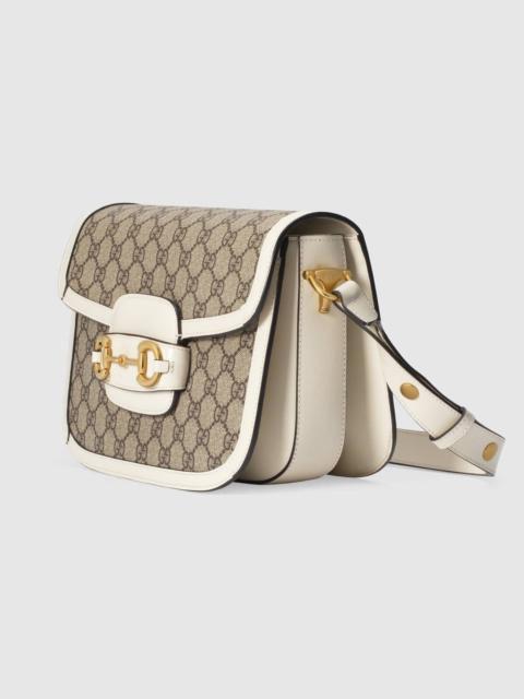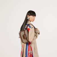 Introduced for Cruise 2020, the Gucci Horsebit 1955 bag is recreated from an archival design. With the same lines and forms first introduced over six decades ago, the accessory unifies the original details with a modern spirit, highlighting the Horsebit. Part of Gucci’s genetic code, the double ring and bar design has been established as one of the most distinctive elements among the House symbols borrowed from the equestrian world. Presented on a small flap shoulder bag, the hardware is paired with the House’s monogram fabric and completed with a special mechanism that adjusts the length of the shoulder strap so it can be carried on one shoulder or cross body. Pieces with versatile ways to wear and style embrace each person who is part of the House’s individual spirit. - Beige/ebony GG Supreme canvas, with brown leather trim - Gold-toned hardware - Microfiber lining with a suede-like finish - Horsebit detail at the front - Half Horsebit detail at each side - Each bag will ship with a small pouch containing two additional button covers that can be used to cover the exposed studs when the shoulder strap is lengthened - Three gussets with one zipper and one open pocket - Adjustable shoulder strap drop: 9.8" - 11.8" - Strap length: 25.6" - 29.1" - Flap closure - Weight: 1.8 lbs approximately - Small size: 9.8"W x 7"H x 3.1"D - Made in Italy - Fits up to: iPhone Pro Max/Plus, Airpods, long wallet, and lipstick