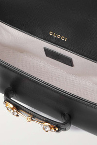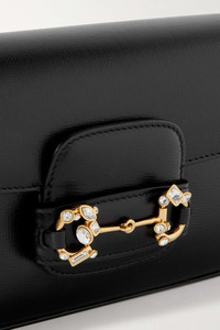 EDITORS'NOTES EXCLUSIVE AT NET-A-PORTER. Gucci injects even more sparkle into its coveted accessories family with this 'Horsebit 1955' shoulder bag. Made from textured-leather, it's topped with a crystal-embellished version of the Italian label's signature hardware. SIZE & FIT This item’s measurements are: - Min. Strap Length: 109cm / 42.9in - Handle Drop: 21cm / 8.3in - Depth: 5.5cm / 2.2in - Max. Strap Length: 109cm / 42.9in - Height: 13cm / 5.1in - Width: 23.5cm / 9.3in DETAILS & CARE - Black textured-leather (Calf) - Tab-fastening front flap - Comes with dust bag - Weighs approximately 2.2lbs/ 1kg