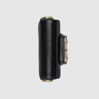 Signature Gucci designs go miniature for Fall Winter 2023. Featuring the same unmistakable hardware and finishes, this black leather Gucci Horsebit 1955 is a playful variation of the original dimensions. With multiple ways to style it, the design is seamlessly integrated into everyday wear. - Black leather - Gold-toned hardware - Moiré and microfiber lining with suede-like finish - Horsebit - Inside: 1 card slot - Chain shoulder strap with 21.2" drop - Flap closure - 4.9"W x 3.5"H x 1.8"D - Made in Italy - Weight: 0.59lbs approximately