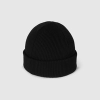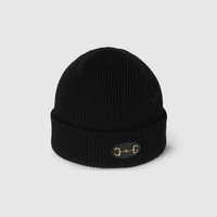 The Pre-Fall 2025 soft and silk accessories' collection animate House codes through sophisticated trimmings, logo patches and subtle embroideries. This wool hat is defined by a Horsebit and leather patch detail. - Black wool - Horsebit and leather patch detail - Made in Italy