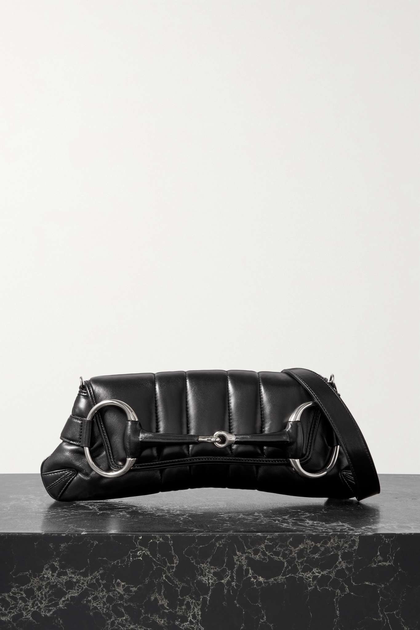 EDITORS'NOTES There was something so cool about the way Gucci's models looped their hands through the exaggerated hardware and clutched this 'Horsebit' bag on the Fall '23 runway. Puffy, quilted and oversized, it's been made in Italy from soft, buttery leather and has an optional shoulder strap. SIZE & FIT This item’s measurements are: - Handle Drop: 20cm / 7.9in - Depth: 7cm / 2.8in - Max. Strap Length: 48cm / 18.9in - Height: 15cm / 5.9in - Width: 37cm / 14.6in DETAILS & CARE - Black leather (Lamb) - Clasp fastening at front - Weighs approximately 2.9lbs/ 1.3kg