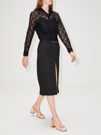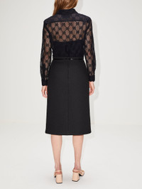 A textured scuba fabric gives structure to this skirt's slim-fitting silhouette and sharp front slit. To finish the look with a refined Gucci feel, the waistline is accented by horsebit hardware. Details Designer