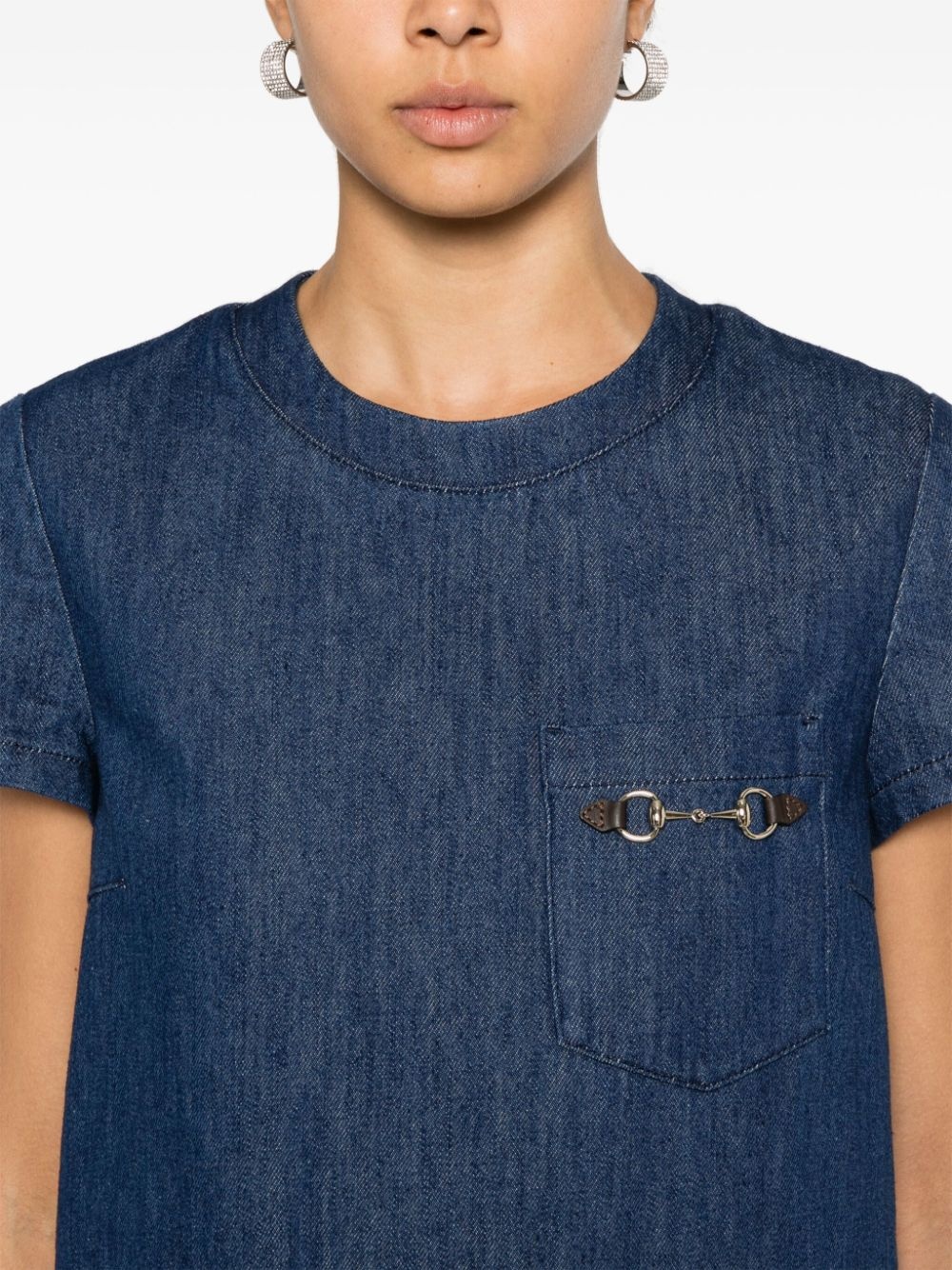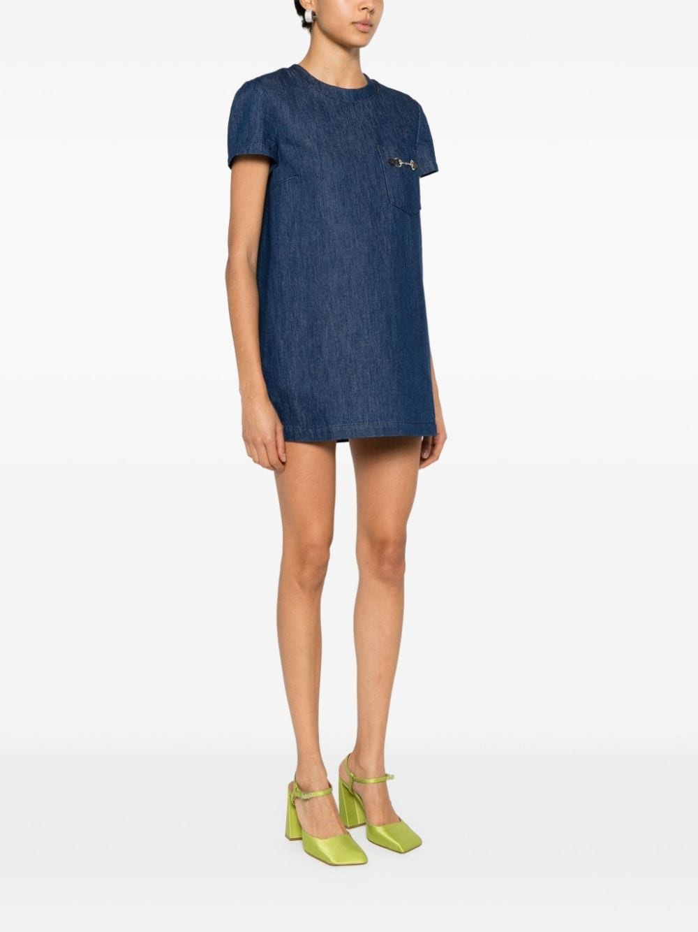 horsebit-detail denim mini dress Highlights - Indigo blue - Cotton - Denim - Round neck - Short sleeves - Signature horsebit detail - Straight hem - Concealed rear zip fastening - We've partnered with good on you â an independent agency that rates how brands perform in relation to their impact on the planet, people and animals, with a multi-criteria rating simplified to a five points scale. in order to be awarded our conscious label, larger brands need to score a minimum of four out of five ('good'), while smaller brands must score at least three out of five ('it's a start'). - This item comes from a brand rated three out of five ('it's a start') by good on you at the time it was added on farfetch. please note, this is a brand-level rating and does not guarantee that this product is made with conscious materials. - Learn more about what makes a product conscious on our conscious criteria page Made in Italy Composition Outer: Cotton 100% Lining: Polyester 65%, Cotton 35% SIZE & FIT Model measurements Height 5 ft 10 in(1.77 m) Bust/Chest 31.88 in(81 cm) Hips 35.43 in(90 cm) Waist 24.8 in(63 cm) FittingInformation Designed to be unstructured, offering a loose fit throughout Sturdy and hard-wearing, this denim piece offers no stretch This piece fits true to size – take your usual size
