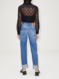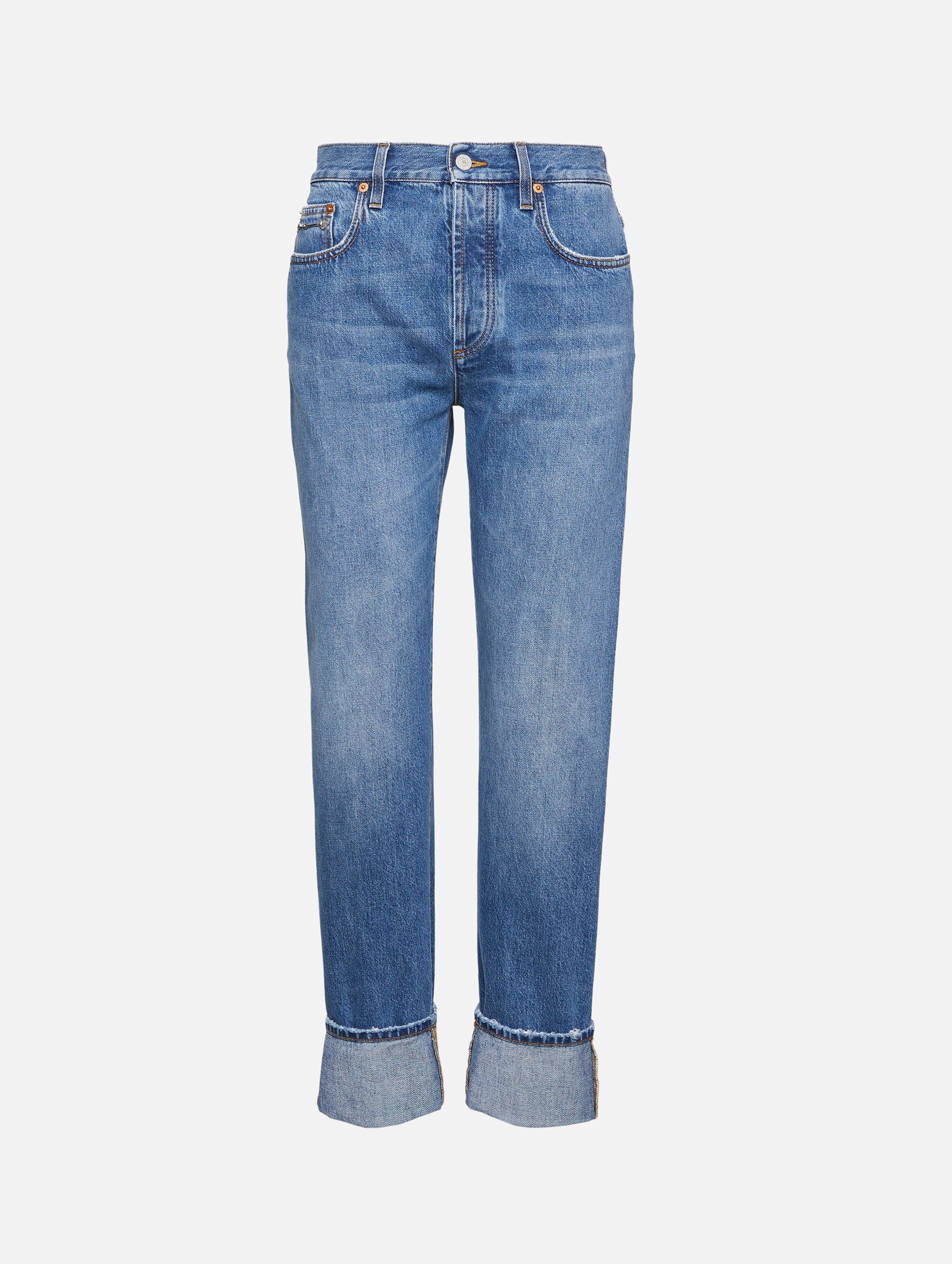 Enhanced with signature Horsebit hardware and an indigo eco wash, Gucci elevates a relaxed 90s silhouette with their meticulous craftsmanship and house details. Details Designer