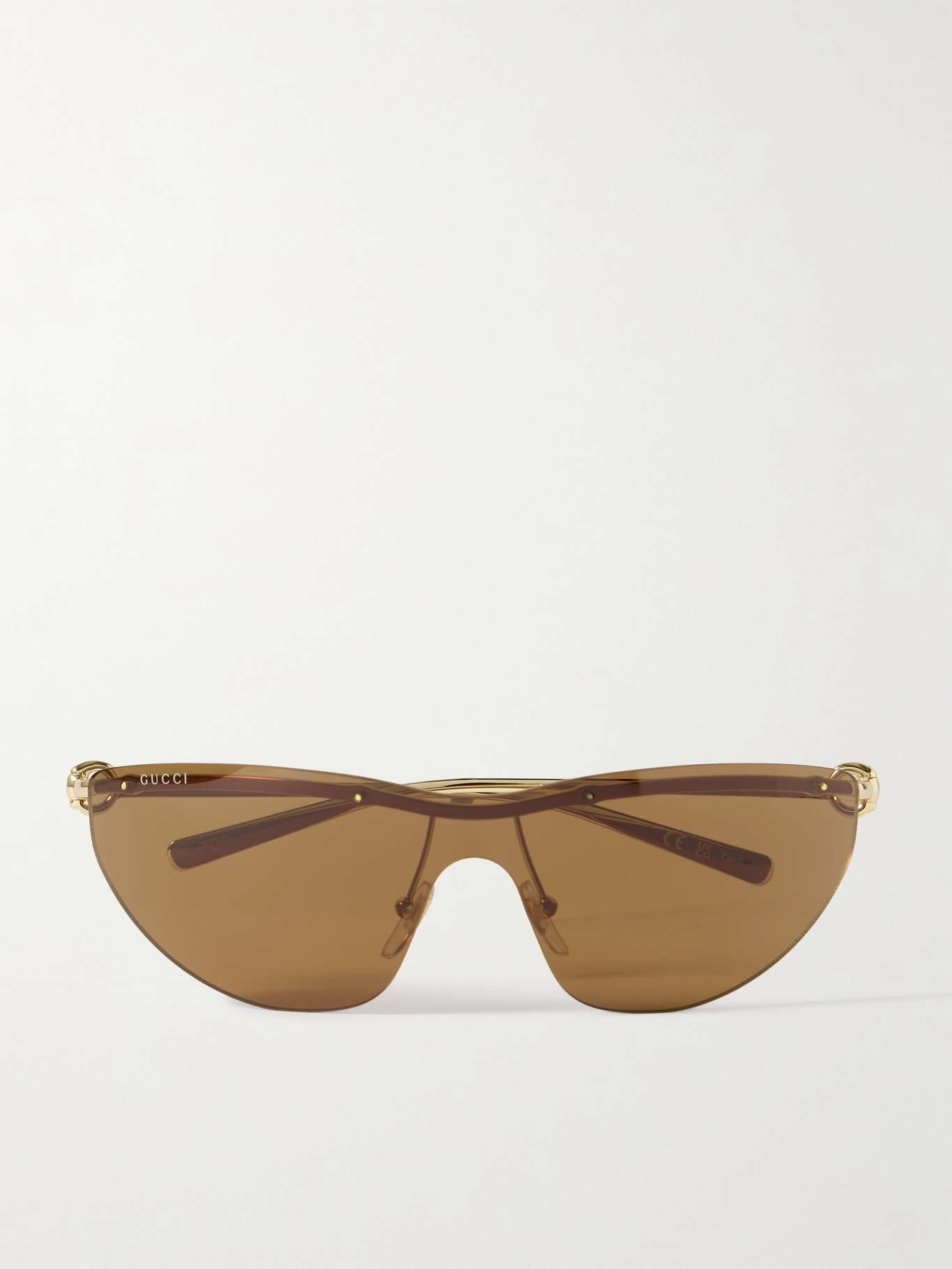 Gucci Eyewear's sunglasses recall popular styles from the early aughts. Made in Italy from polished gold-tone metal, they have rimless lenses in a cat-eye shape and are detailed with the iconic horsebits at the temples. Details & Care - Gold-tone metal - Come with a case - 100% UV protection