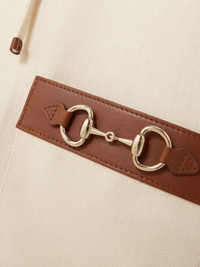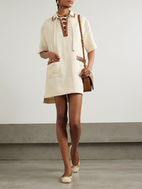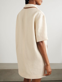 Horsebit-embellished leather-trimmed linen mini dress Cream