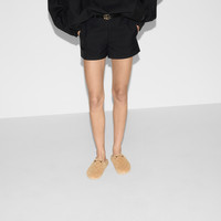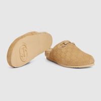 The latest selections spotlight essential silhouettes with emblematic details. This women's slip-on style is crafted from GG suede, a distinctive material by the House, and completed by the iconic Horsebit. - Beige GG suede - Women's - Light gold-toned hardware - Merino wool lining - Horsebit - Rubber sole - Round toe - Flat - Height: 0.1" - Made in Italy