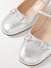 Lady horsebit-detailed metallic crinkled-leather Mary Jane pumps Silver