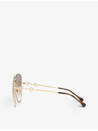 PRODUCT DETAILS - Gucci square-frame glass and metal sunglasses - Metal frames, glass lenses - Style number: GG0879S - Oversized square frame, tinted polarised lens, logo-plaque arms, gold-tone hardware - Frame shape: square - Lens width: 61 mm - Bridge width: 18 mm - Temple length: 140 mm - Wipe with a clean, dry cloth - Made in Italy