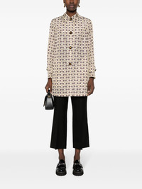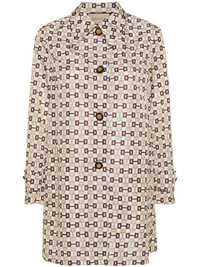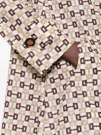 single-breasted Horsebit-print coat Highlights - Ivory white/brown - Signature horsebit print - Enamel buttons - Pleat detailing - Pointed flat collar - Front button fastening - Long sleeves - Buttoned cuffs - Two side inset pockets - Straight hem - Unlined Made in Italy Composition Polyamide 100% SIZE & FIT Model measurements Height 5 ft 11 in(1.8 m) Bust/Chest 32.67 in(83 cm) Hips 36.22 in(92 cm) Waist 24.4 in(62 cm) FittingInformation Designed to be unstructured, offering a loose fit throughout Made from a lightweight non-stretch fabric This piece fits true to size – take your usual size Washing instructions Dry Clean Only