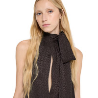 In the Cruise 2026 collection, women's ready-to-wear pieces celebrate the Gucci wardrobe, blending archival influence with the history of Florence in a playful melange, ranging from the minimal to the maximal. Crafted from Horsebit silk jacquard, this dress is completed with a self-tie neck bow. - Dark brown Horsebit silk jacquard - Unlined - Self-tie neck bow - Sleeveless - Length: 25,5", based on a size 40 (IT) - Made in Italy - Fabric: 100% Silk