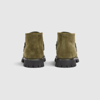 Designed with the classic shape of the loafer, the Horsebit ankle boot bridges the past to the present. Crafted by suede and defined by a slim silhouette, the boot pays homage to the House's history. - Dark green suede - Light gold-toned hardware - Leather lining - Horsebit - Rubber sole - Flat - Heel height: 0.5" - Made in Italy
