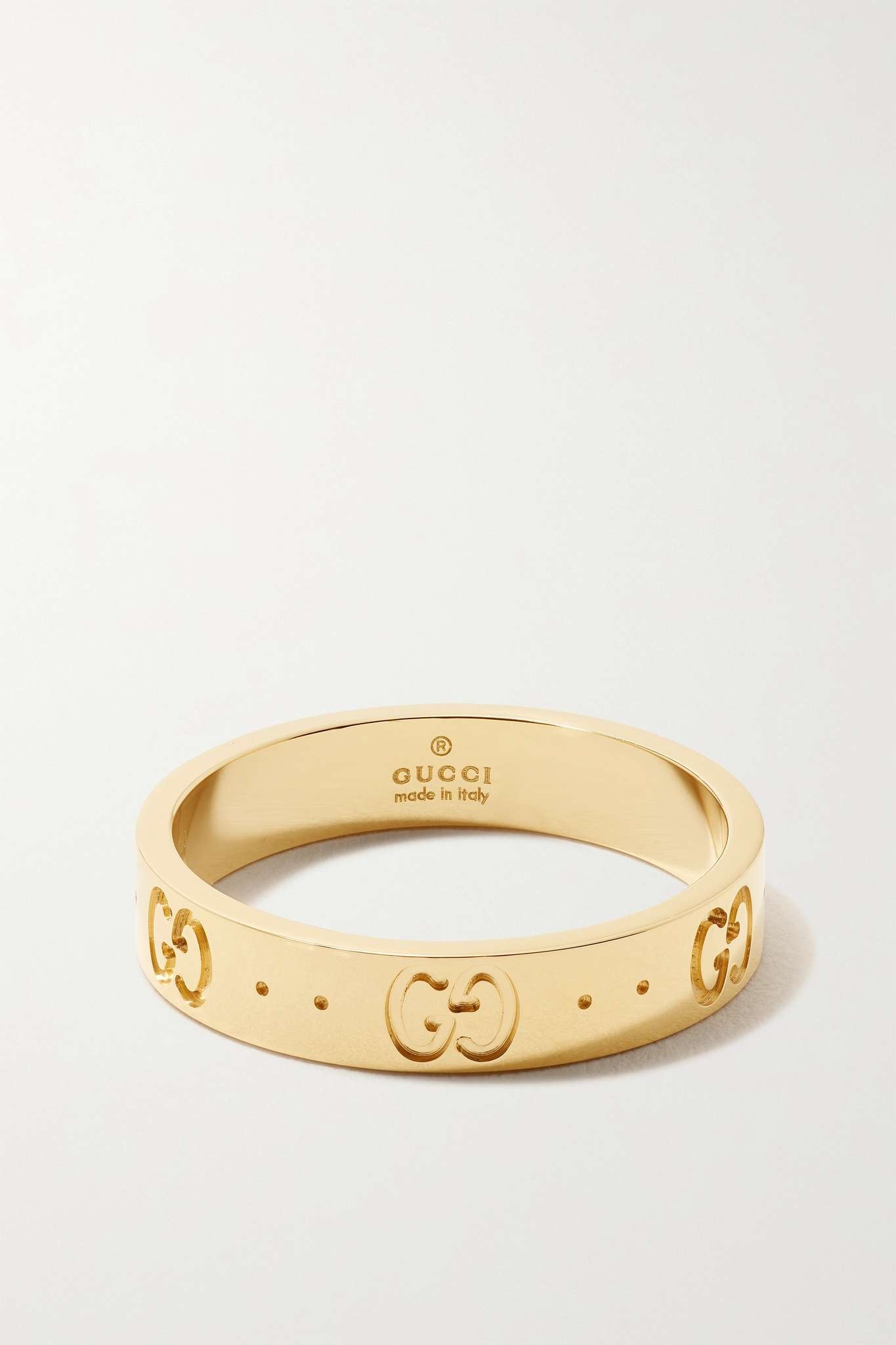 Gucci's ring is part of the 'Icon' capsule, which celebrates the house's archival motifs. It's been cast in Italy from 18-karat gold and etched with the signature 'GG' monogram, which is modeled after the founder's initials. The slim band makes it great for stacking. Size & Fit - Italian sizing We advise that you measure the size of your finger rather than the size of your ring. - 1. Wrap a length of string or ribbon around the base of your finger. To ensure the ring fits comfortably, we suggest measuring your knuckle as well. Select a size that will slide on and off your finger easily. - 2. With a pen, mark the point on the string where the ends meet. - 3. Measure the string in millimeters with a ruler. - 4. Choose the closest measurement to the chart below to identify your ring size. Measurements can be found in the link below Details & Care - Comes in a designer-stamped box - This piece has been certified in accordance with the Hallmarking Act 1973