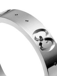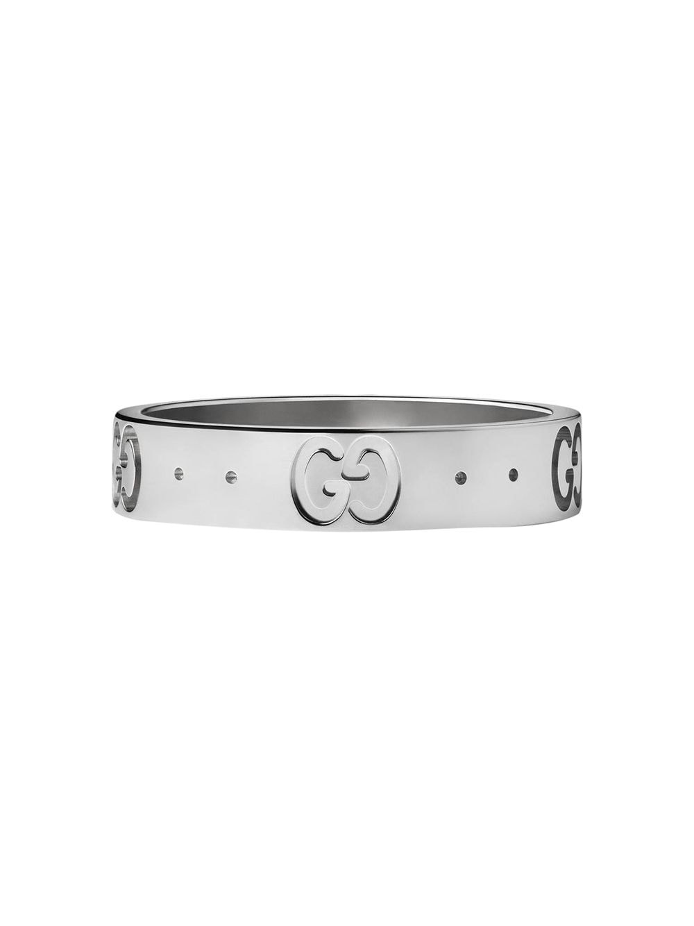 Icon thin band ring Test your mettle. Gucci's ring features embossed interlocking GG logos and subtle, punctuated detail. Welcome to the inner circle. Featuring an embossed finish, a rounded shape and embossed double GGs. Made in Italy