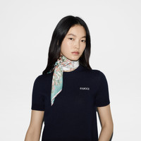 Colorful floral prints of the House's silk accessories begin with hand-drawn patterns This acquamarine and pink silk carré has an all-over floral print together with a bold depiction of the Interlocking G in the center. - Acquamarine and pink Gucci Interlocking G floral print silk twill - Hand-sewn trim - 35.4"W x 35.4"L - Made in Italy