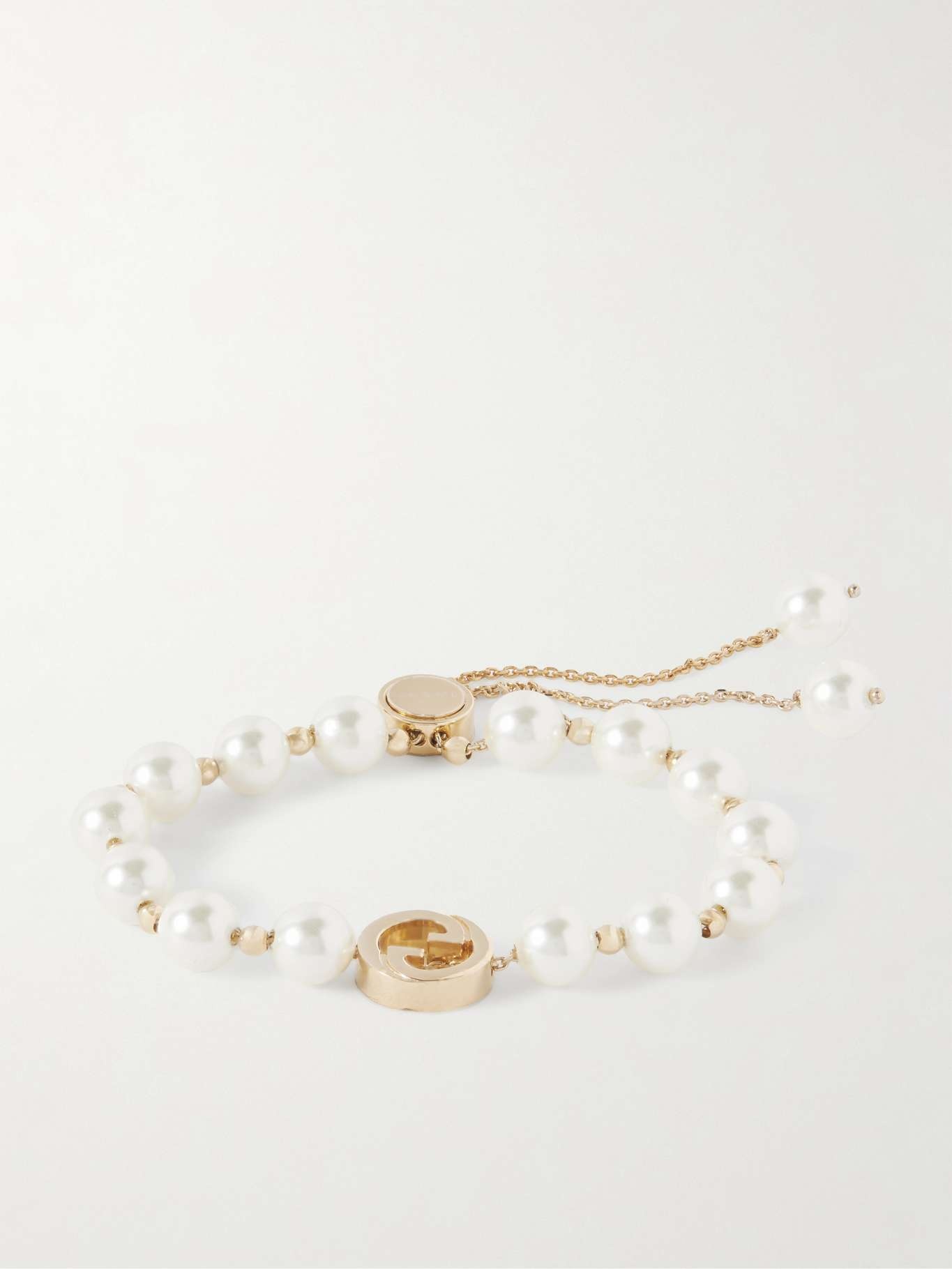 EDITORS'NOTES Gucci's bracelet is centered with an interlocking 'GG' charm – a motif that's decorated the house's designs since the '60s. It's made from gold-tone brass strung with radiant faux pearls and has an adjustable toggle fastening. SIZE & FIT This item’s measurements are: - Pendant Length: 1.5cm / 0.6in - Length: 34cm / 13.4in - Pendant Width: 1cm / 0.4in DETAILS & CARE - Toggle fastening