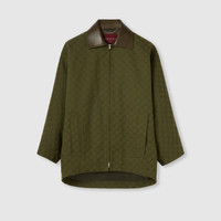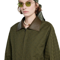 Green defines the color narrative for Pre-Fall 2025 and speaks volume with textures, logo details and varying tonalities, as seen on the runway. This GG canvas jacket features a contrasting leather collar and appears in the signature forest green. - Forest green GG canvas - Lined - Point leather collar - Padded - Two side pockets - Zip closure - Made in Italy