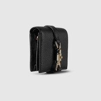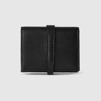 Inspired by the Jackie 1961, this card case wallet highlights the exceptional craftsmanship and sleek silhouette of one of the House's most iconic designs. The piston detail decorates the front of this black leather accessory, while the inside features multiple compartments. - Black leather - Light gold-toned hardware - Taffeta lining - Piston closure - Inside: 5 card slots, open pocket, 1 zipper pocket, 1 bill compartment - Snap closure - Weight: 130gr approximately - Open: 4.3"W x 6.9"H, Closed: 4.3"W x 3.3"H x 1.2"D - Made in Italy