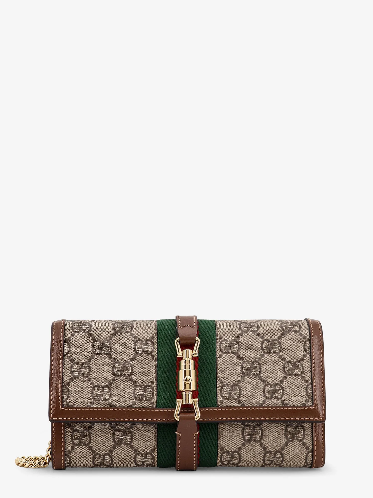 - Closure with metal piston and Web ribbon - Removable chain shoulder strap - Twelve credit card slots and two banknote slots, two compartments and a zipped partition - Made in Italy - Supreme GG fabric/leather - Lining: leather/viscose - W: 19 cm x H: 10 cm x D: 3.5 cm - SKU: 652681HUHHG8565