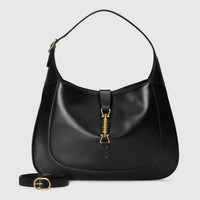 The reintroduction of the Jackie bag for Fall Winter 2020 presents a new take on a historical Gucci icon. Brought back to the forefront, the recognizable shape is presented in black leather and enhanced with an additional, detachable shoulder strap. Attached to the bag with a buckle closure, the second strap adds a contemporary feel to the archival style, providing new ways to wear—from top handle, shoulder to cross body. Pieces with versatile ways to wear and style embrace each person who is part of the House’s individual spirit. The Jackie 1961: available exclusively in Gucci stores and on Gucci.com - Black leather - Gold-toned hardware - Microfiber lining with a suede-like finish - This product contains leather made through an alternative metal or chrome free tanning process, reducing the environmental footprint compared to traditional methods. - Interior: 1 open pocket and 1 zipper pocket - This style is sold with an additional strap which can be attached to the bag with a buckle closure - Adjustable shoulder strap with 6.9"-20.5" drop - Handle: 7" strap drop from central hole, handle with additional shoulder strap: 20.5" drop from central hole - Piston closure - Medium size: 14"W x 9.8"H x 1.8"D - Weight: .6kg - Made in Italy - The person is 6'1" tall