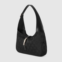 Introducing Spring Summer 2026. The new Jackie Slim presents a sleek, relaxed style, crafted from the lightweight yet structured GG canvas in a vintage-inspired shade of sand. The piston closure is easy to use, further elevating one of the House's most emblematic hardware details in palladium-toned finish. - Black GG canvas - Black soft grainy leather trim - Palladium-toned hardware - Black canvas lining with Diamante motif - Inside: 1 zip pocket - Handle drop: 16.1" - 22.4" and adjustable length: 33.9" - 40.6" with 26.2" extender strap - Piston closure - 11"W x 6.3"H x 1.4"D - Weight: 0.6lbs approximately - Fits iPhone Pro Max/Plus, Airpods, small wallet, and lipstick