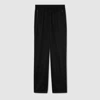 Introducing Spring Summer 2026. This style is part of the La Famiglia collection, which reinterprets the House’s codes through singular personalities and distinctive aesthetic attitudes. Crafted from jersey, these leisure pants are enriched with a Double G embroidery. - Black jersey - Double G embroidery - Elastic waistband - Side zip pockets - Engraved Gucci zip puller - Length: 45.27", based on a size M - Made in Italy - Fabric: 95% Polyamide, 5% Elastane - Pocket lining: 73% Acetate, 27% Silk - Embroidery: 100% Polyester