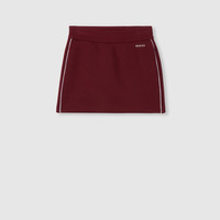 For the Pre-fall 2025 collection, colorful skirts and dresses infuse ready-to-wear with a vibrant twist for the transitional wardrobe. This viscose jersey mini skirt appears in the signature Gucci Rosso Ancora hue and is complete with a Gucci logo detail. - Gucci Rosso Ancora red double viscose jersey - White piping trim - Gucci logo detail - Elastic waist with drawstring - Rib trim - Mini - Made in Italy