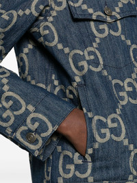 Jumbo GG denim jacket Gucci introduces its maximalist take on its historic monogram with this Jumbo GG design decorating this denim jacket throughout. Highlights - Blue/beige - Cotton - Denim - Jumbo gg canvas - Classic collar - Long sleeves - Buttoned cuffs - Two chest patch pockets - Seam detailing - Straight hem - Front button fastening Made in Italy Composition Cotton 100% SIZE & FIT Model measurements Height 5 ft 11 in(1.8 m) Bust/Chest 32.67 in(83 cm) Hips 36.22 in(92 cm) Waist 24.4 in(62 cm) FittingInformation Designed to be unstructured, offering a loose fit throughout The adjustable tabs allow for fitted preferences Sturdy and hard-wearing, this denim piece offers no stretch This piece fits true to size – take your usual size Measurement WAIST 39.37 in(100 cm) BUST 40.94 in(104 cm) Washing instructions Dry Clean Only
