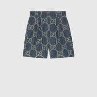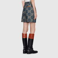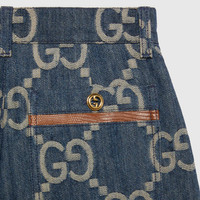 Presented for the Gucci Aria collection, these shorts are crafted from organic jumbo GG denim and enriched with lizard print leather trims. Gucci explores new takes on the cult fabric, reinterpreting it with different designs and washing techniques that blur the line between vintage and contemporary. - Blue and ivory jumbo GG denim - Brown lizard print leather trim - Gold-toned Interlocking G buttons - Front slant pockets - Back patch pockets - Button and zip closure - Length: 18.1", based on a size 40 (IT) - Leg opening: 12.9", based on a size 40 (IT) - Made in Italy - The model is 5'7" tall. The product shown in this image is a size 40 (IT)