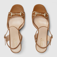 This pair of mid-heel sandals is crafted in soft and refined leather, the signature Horsebit defines the design adding a touch of timeless elegance. The adjustable ankle closure completes the style. - Brown leather - Women's - Silver-toned hardware - Leather lining - Horsebit - Open toe - Adjustable ankle closure - Mid-heel - Heel height: 3" - Made in Italy