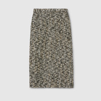The Cruise 2026 women's ready-to-wear collection highlights sumptuous materials on essential silhouettes to usher in the colder season. This midi skirt appears in black and white laminated boucle fabric. - Black and white laminated boucle fabric - Lined - Belt loops - Two side pockets - Back hidden zip closure - Length: 31.5"