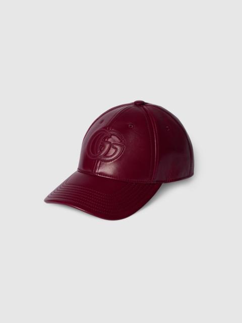 The Pre-Fall 2025 soft and silk accessories collection animates House codes through sophisticated trimmings, logo patches and subtle embroideries. This leather baseball cap is defined by a Double G detail and an embossed Gucci logo on the reverse. - Black leather - Embossed Gucci logo - Double G detail - Adjustable hook and loop closure - Made in Italy