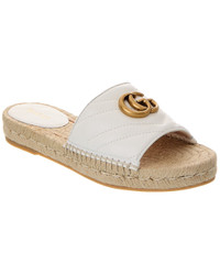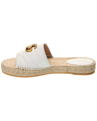 Carefully constructed in Spain, these espadrille sandals are made with white leather and finished with the Double G. With an inherently seaside feel, the espadrille evolves from its 13th century origins into a contemporary style. - White matelassé leather - Double G - Cord platform - .8" platform - Materials made in Italy. Shoe constructed in Spain