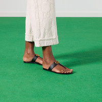 The leather thong sandal is embellished with the Double G hardware—an archival design from the '70s. - Black leather - Double G - Leather sole - Flat - Made in Italy