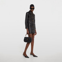 Introducing Spring Summer 2026. This style is inspired by the "Incazzata" look of La Famiglia. The collection reinterprets the House’s codes through singular personalities and distinctive aesthetic attitudes. Crafted from calf leather with aged effect, this jacket is enriched with a handmade clouding treatment. - Black calf leather with aged effect - Handmade clouding treatment - Aged-effect Double G buttons - Aged-effect zip pockets - Lined - Side pockets - Length: 17.9"; Sleeves length: 22.2"; Shoulders: 16.2", based on a size 38(IT) - Made in Italy - Genuine leather: Calfskin - Lining: 100% Viscose