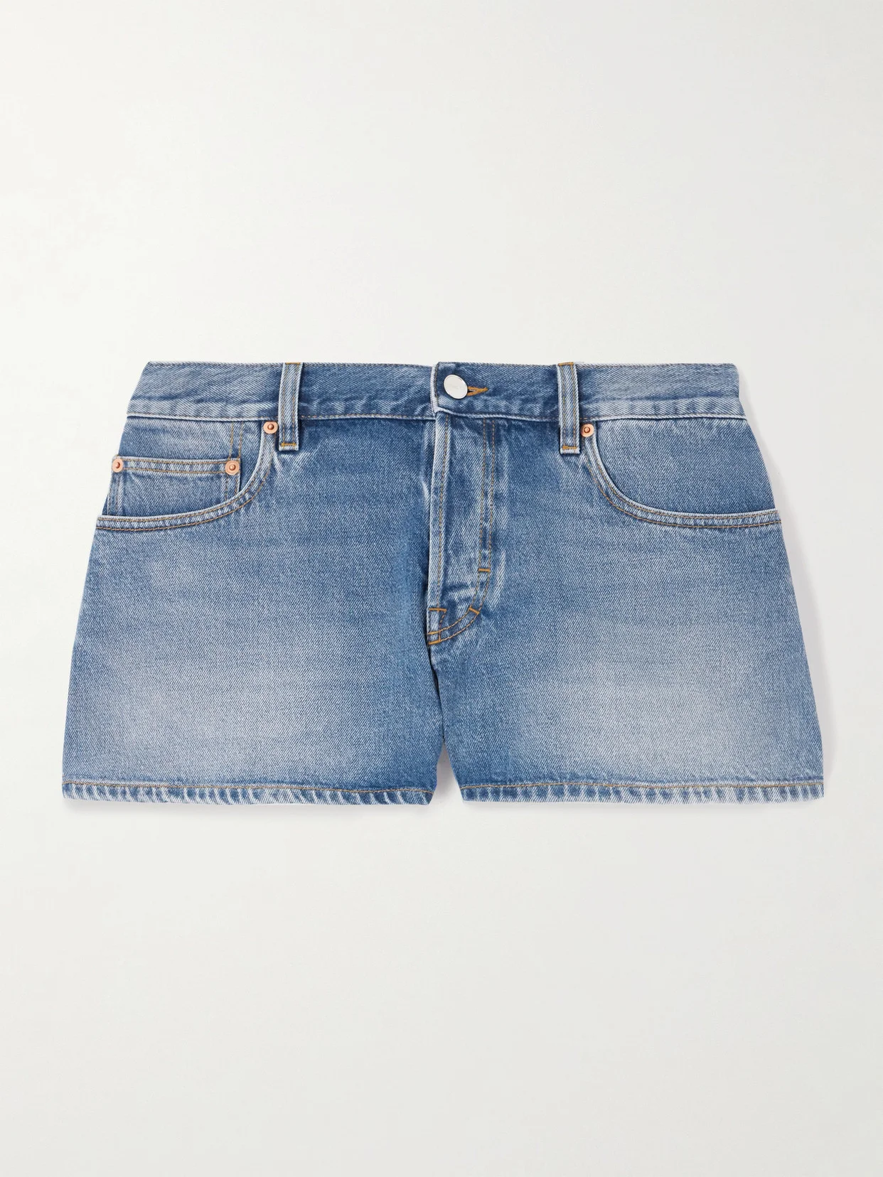 Gucci's 'Lido' shorts are made from faded denim and have a boxy shape. They're detailed with contrast topstitching and appliqued with a patent-leather logo patch in the house's signature 'Rosso Ancora' shade. Complement the mid-rise with a cropped tee. Large to size. See Size & Fit notes.