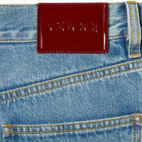 The Pre-Fall 2025 collection introduces a fresh take on denim, with subtle details that elevate casual pieces for everyday wear. Cut from a stonewashed cotton denim, these wide leg pants with a five-pocket style are finished with a Gucci Rosso Ancora naplak label. - Light blue stonewashed certified cotton denim - Gucci Rosso Ancora naplak label - Five pocket style - Button and zip closure - Wide leg - Length: 46.8"; Half waist: 15.4"; Half hips: 18.3"; Half hem width: 12" based on a size 25 - Made in Italy